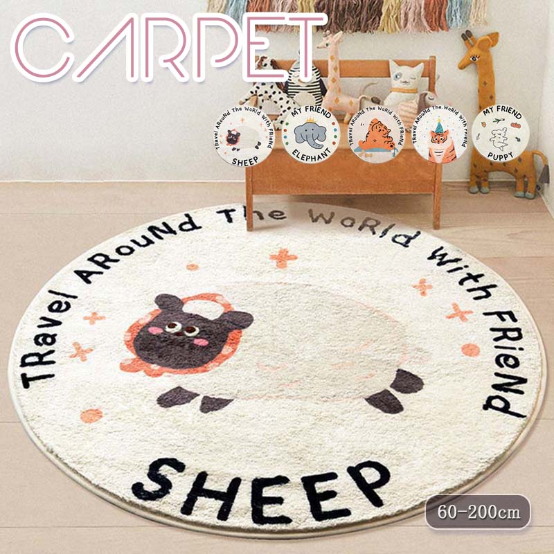 毎月1日 ポイント10倍 ラグ カーペット 丸型 絨毯 じゅうたん センターラグ 滑り止め付き オールシーズン 洗える リビング 洗濯 可愛い 遊び毛なし おしゃれ 子供部屋 ウォッシャブル