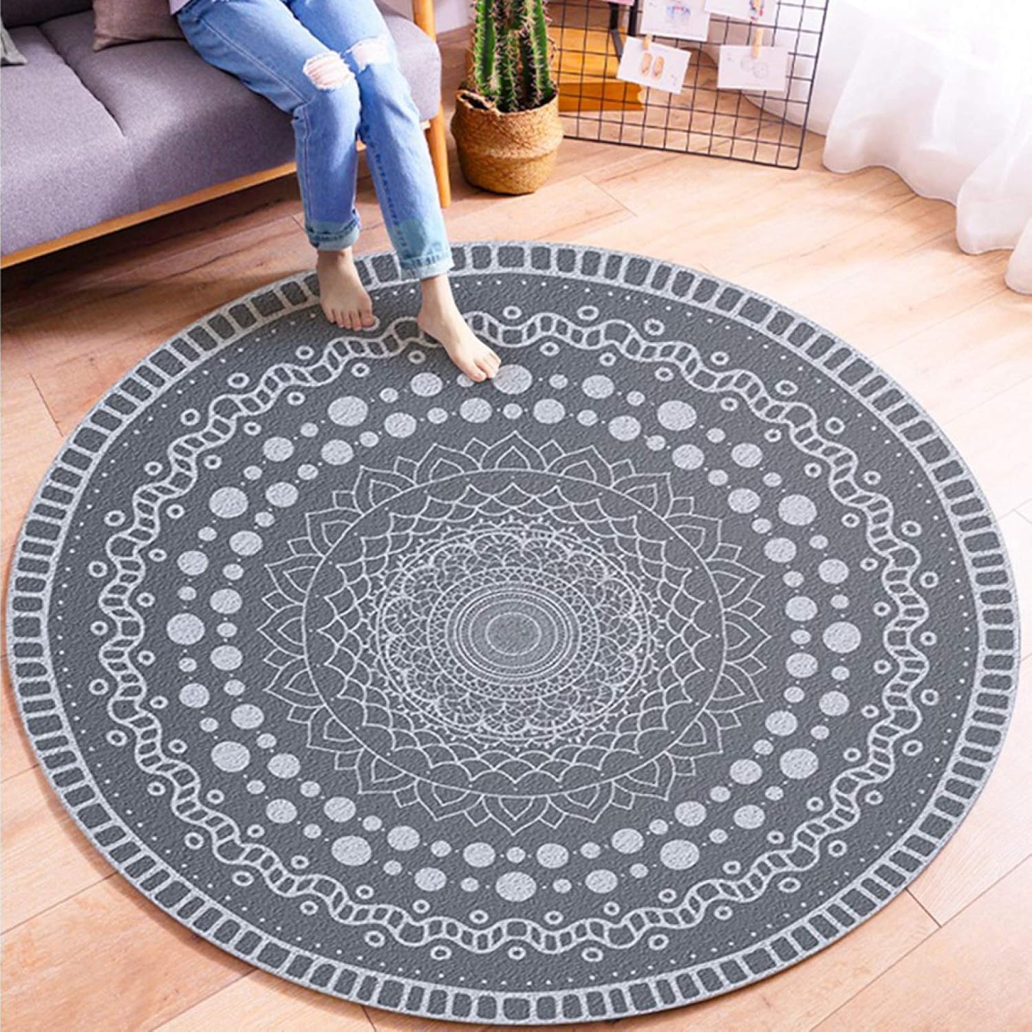 北欧風 円形マット 200x200cm カーペット 洗える 汚れにくい 耐摩耗性 抗菌防臭 掃除ラク・・・