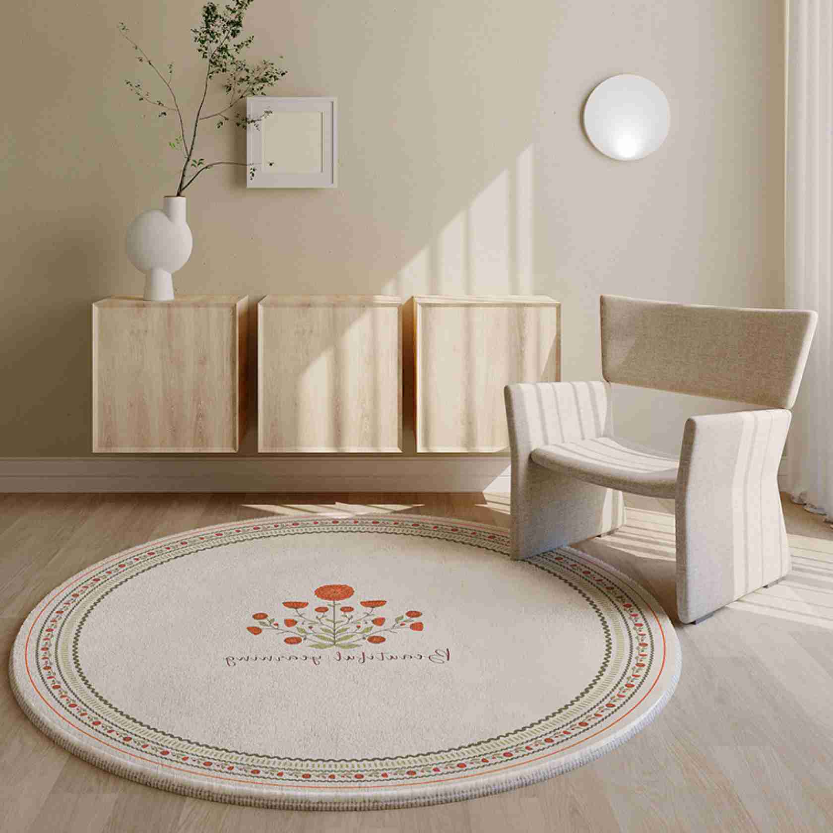大判 ラグマット 北欧 洗える 円形 花柄 可愛い リビング 四季兼用 部屋 おしゃれ 高級 シンプ・・・