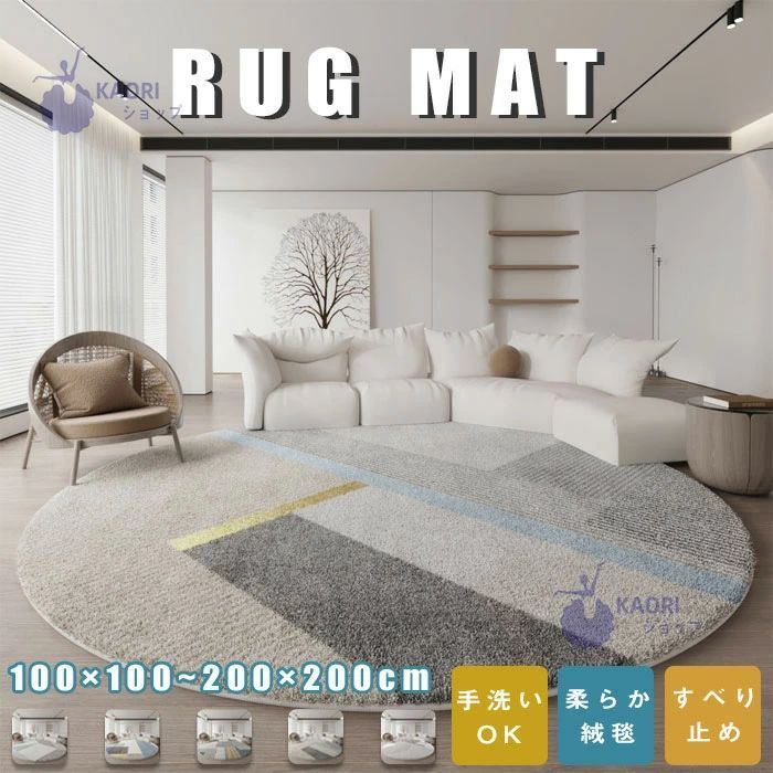 8カラー/6サイズ ラグ 円形 洗える ラグ 円形ラグ 直径200cm 丸型 ラグマット 滑り止め付 西海岸 絨毯 マット 北欧 カーペット リビング 春夏用 可愛い かわいい 撮影背景 脱衣所