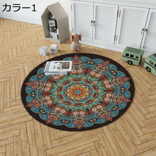 フロアマット オールシーズン使える 円形 カーペット 和風 洗える ラグマット ウォッシャブル モダン 寝室 リビング ヴィンテージ おしゃれ 滑り止め じゅうたん