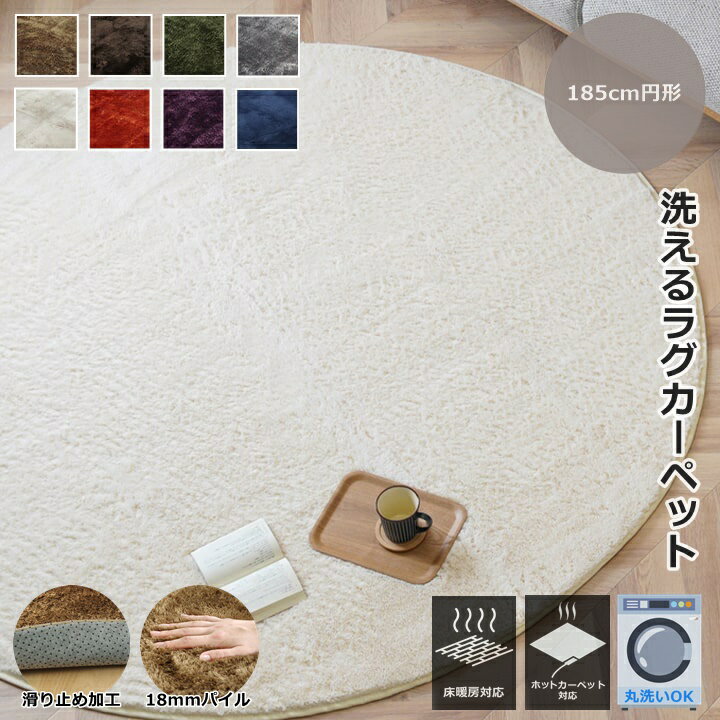 \期間限定10%OFFクーポン/ イケヒコ 洗える ラグ カーペット 絨毯 2畳 円形 185cm ・・・