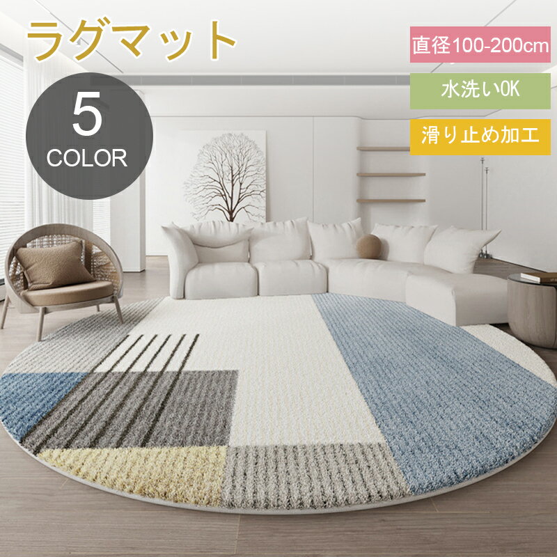 ラグ 洗える 円形 丸型 ラグマット 滑り止め 絨毯 北欧 カーペット リビング ダイニング 子供部屋 脱衣所 家庭用 子供部屋 寝室 オールシーズン かわいい シンプル 新生活