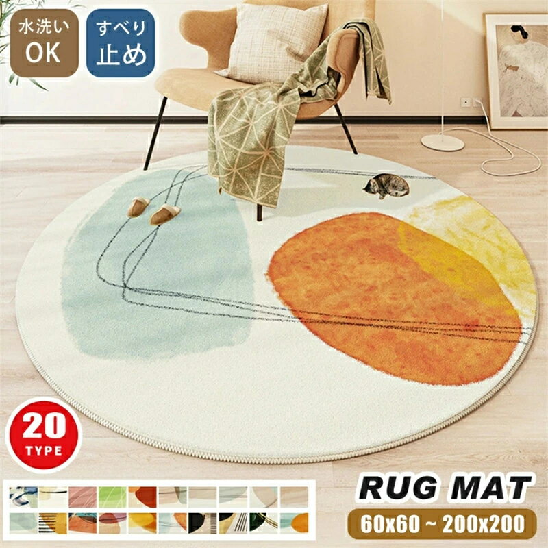 ラグ 円形 洗える ラグ 円形ラグ 最大直径200cm 丸型 ラグマット 滑り止め付 西海岸 絨毯 マット 北欧 カーペット リビング 春夏用 可愛い かわいい 撮影背景 脱衣所