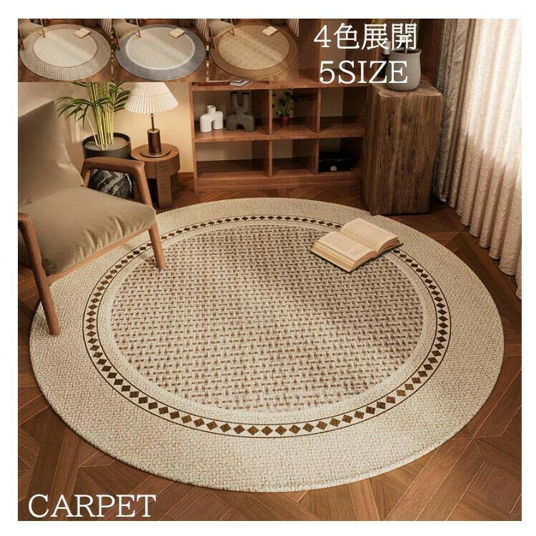 カーペット 円形 ラグ レトロ 高級感 ヴィンテージ風 丸型 オールシーズン 滑り止め ラグマット ・・・