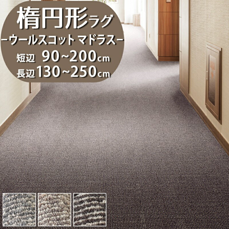 【1cm単位オーダー】圧倒的消臭力!超消臭カーペット 楕円形ラグ(ウールスコット マドラス/WS-M・・・