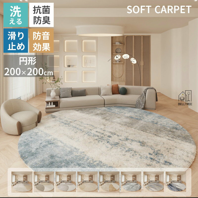 カーペット 洗える 夏用 ラグ オールシーズン ウォッシャブル リビング 丸形 北欧 滑り止め付き シンプル おしゃれ 冬 廊下 マット 室内 モダン ナチュラル リアル オシャレ