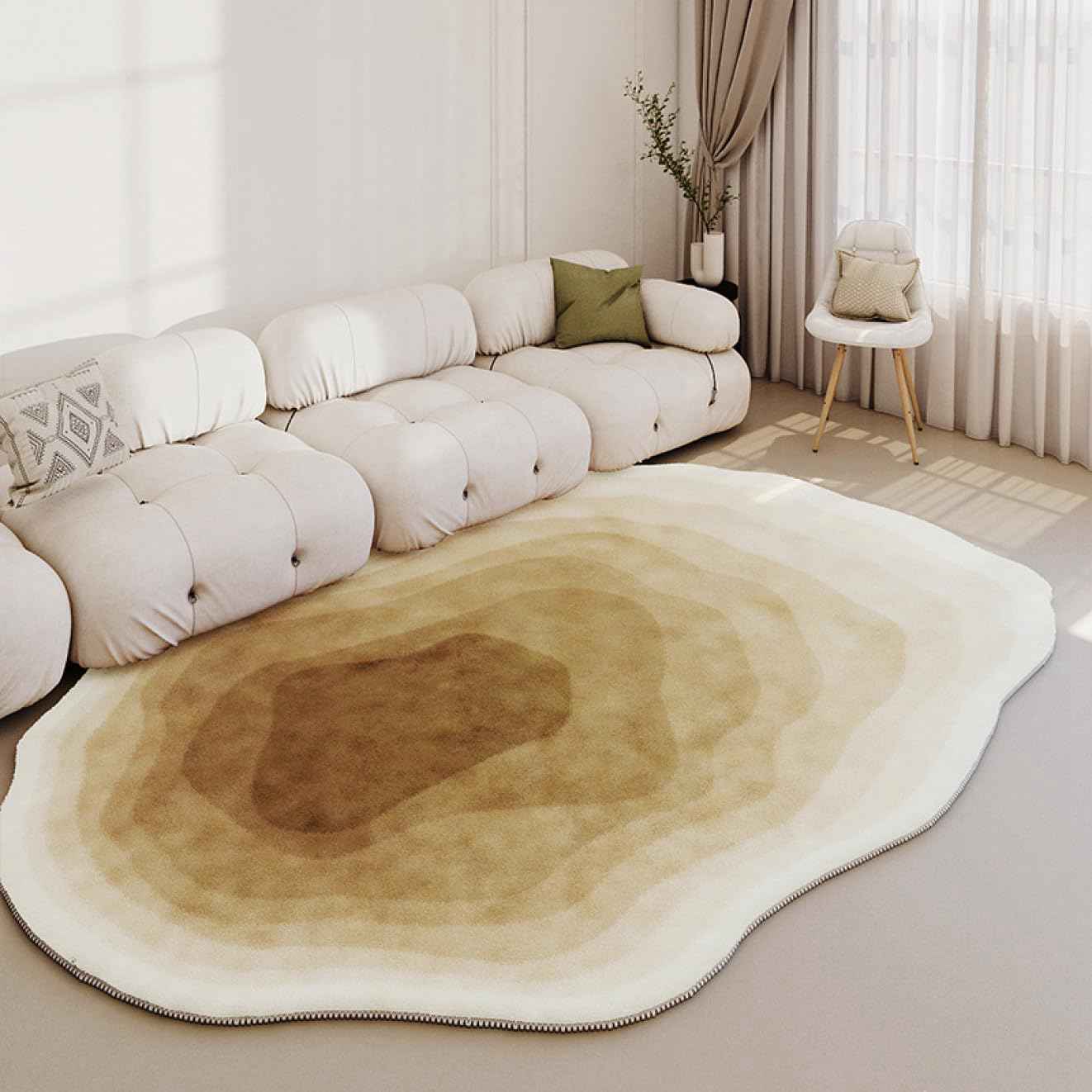 北欧デザインの異形カーペットはフワフワで洗える高級ラグマット 四季兼用でリビングや玄関に最適なシンプルおしゃれアイテム