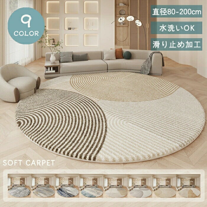 カーペット 洗える 夏用 ラグ オールシーズン ウォッシャブル リビング 丸形 北欧 滑り止め付き シンプル おしゃれ 冬 廊下 マット 室内 モダン ナチュラル リアル オシャレ