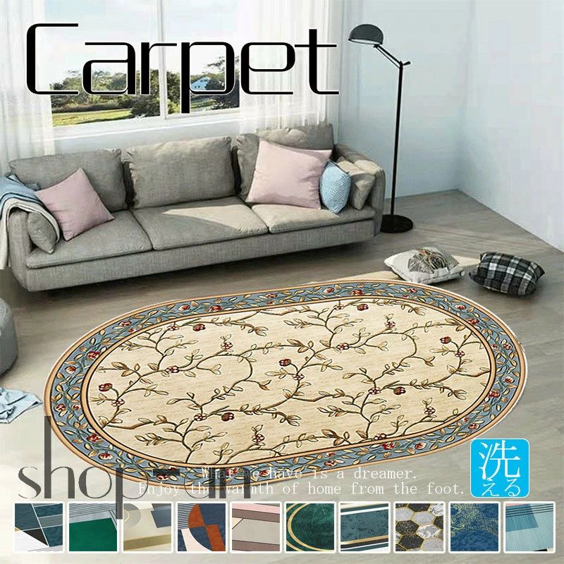 【送料無料】180×280cm 200×300cm カーペット 洗える ラグ じゅうたん オールシーズン ウォッシャブル リビング ベッドルーム 子供部屋 楕円 北欧 滑り止め付き おしゃれ 夏 冬 円