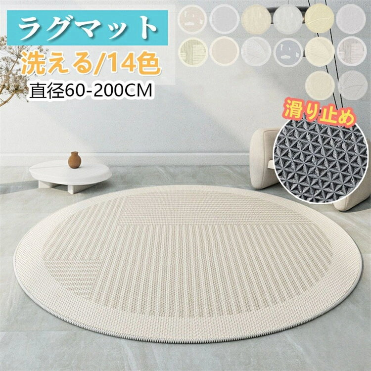 12カラー/7サイズ ラグ 円形 洗える ラグ 円形ラグ 直径200cm 丸型 ラグマット 滑り止め付 西海岸 絨毯 マット 北欧 カーペット リビング 春夏用 可愛い かわいい 撮影背景 脱衣所