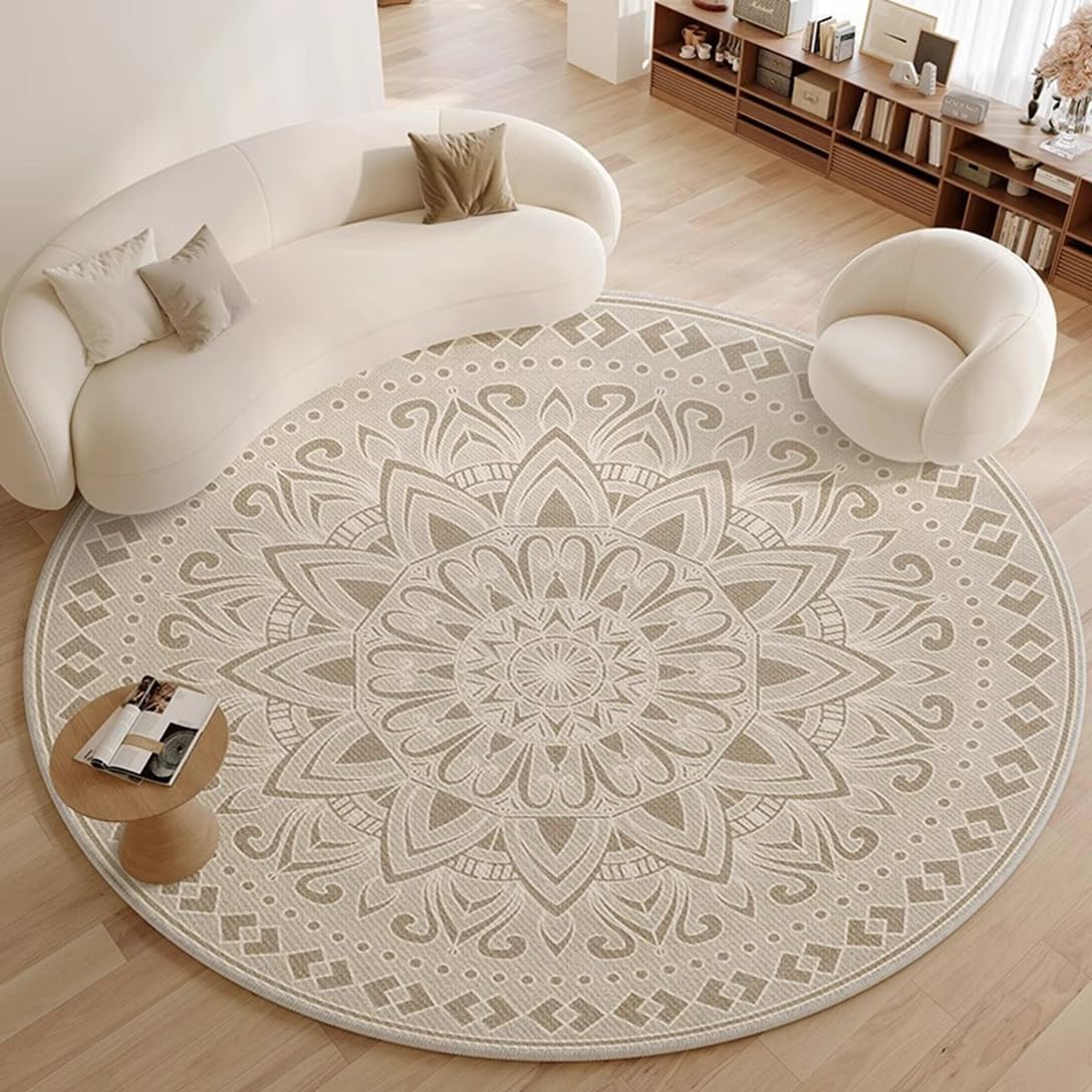 カーペット 円型 滑り止め 綿麻底部 肌に優しい ラグマット ふんわり感 防音 北欧風 丸 消臭抗菌・・・