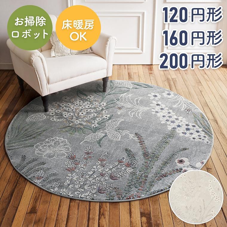ラグ 円形 丸 花柄 ボタニカルデザイン シンプル 北欧 おしゃれ【120cm円形】【160cm円形・・・