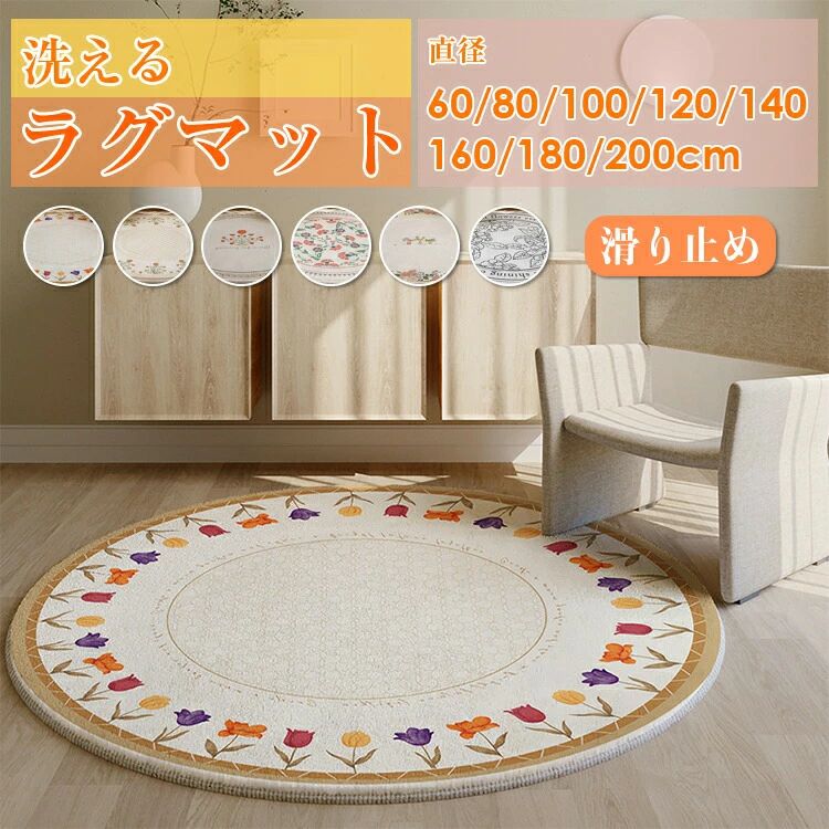 6カラー/8サイズ ラグ 円形 洗える ラグ 円形ラグ 直径200cm 丸型 ラグマット 滑り止め付 西海岸 絨毯 マット 北欧 カーペット リビング 春夏用 可愛い かわいい 撮影背景 脱衣所