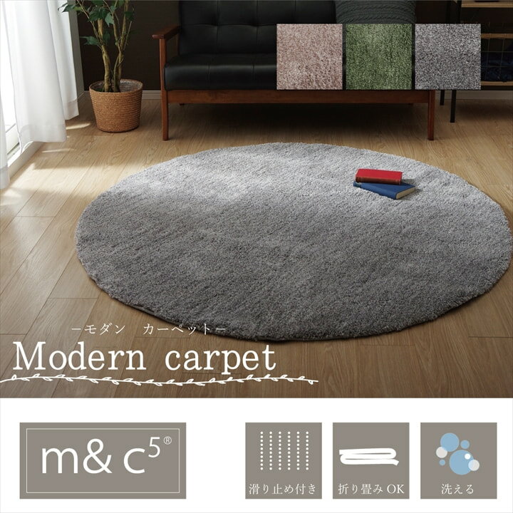 ラグ カーペット 円形 無地 シャギー調 手洗い可 滑り止め付き 選べる3色 ス約150cm・・・