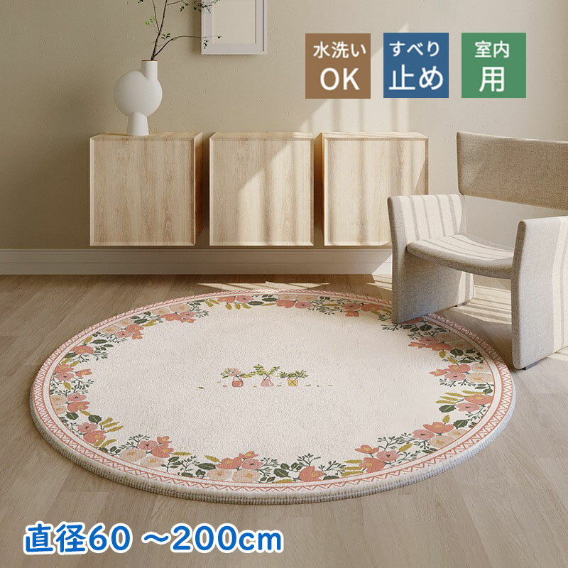 ラグ 円形 ラグ 洗える 花柄 直径60cm 直径200cm カーペット 円形 ラグ 北欧 ラグマッ・・・