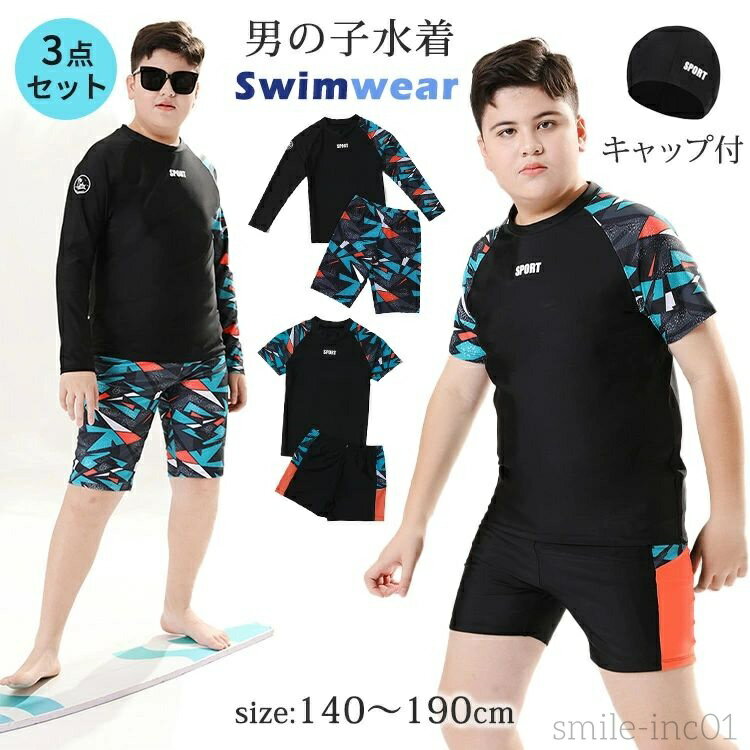 【送料無料】ジュニア 水着 ぽっちゃり体型 3点セット 男の子 セパレート スイムウエア 子供 長袖・・・