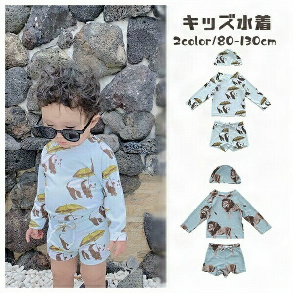 水着 ベビー キッズ 男の子 水着 スイムウェア 上下セット 帽子付き 3点セット 長袖 ラッシュガード UVカット UPF50+