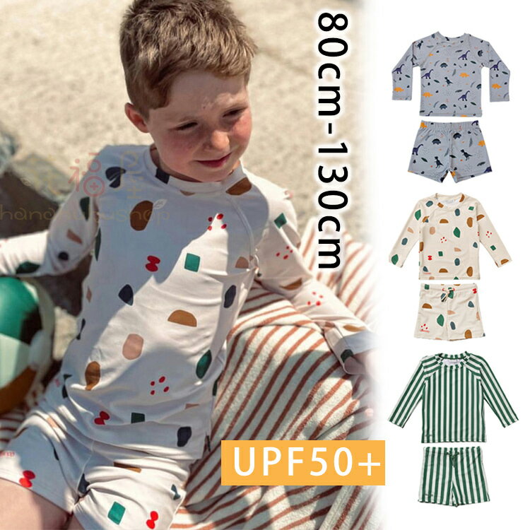 swimwear ラッシュガード 男の子 女の子 日焼け防止 紫外線対策 長袖ラッシュガード 可愛い 恐竜 ダイナソー きょうりゅう カラフル 幾何学模様 石 ストーン ストライプ 縞模様 ボーダー