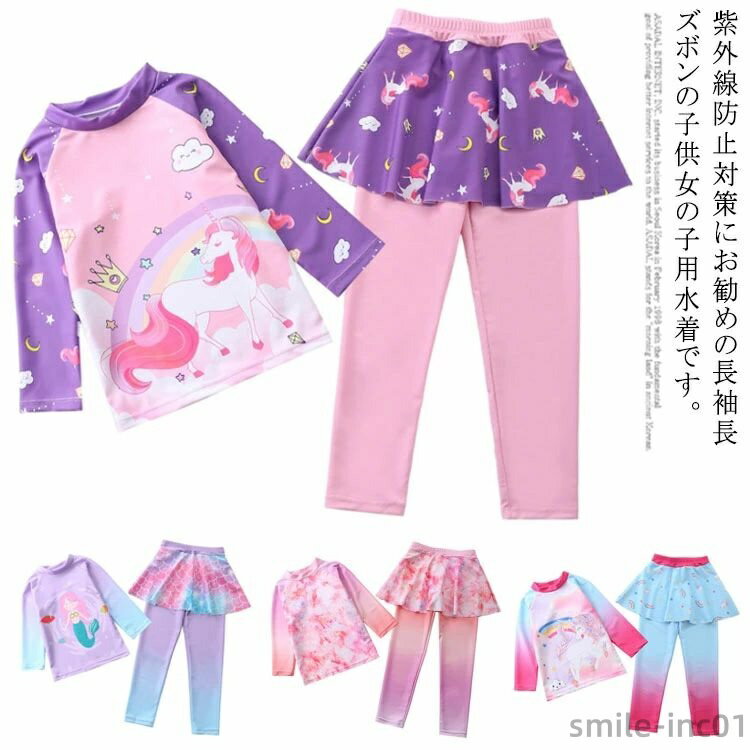 子供水着 キッズ ウェットスーツ 水着 女の子 ジュニア 上下セット パンツ セパレート ラッシュガード 長袖 紫外線対策 スイミング プール