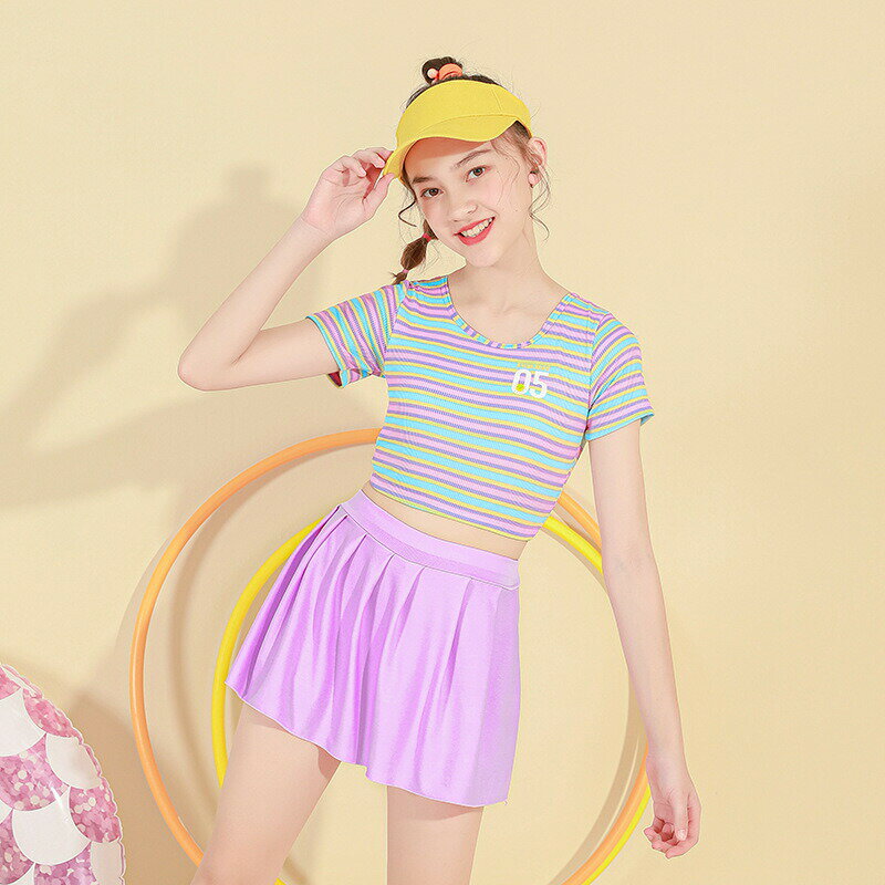 送料無料 子供水着 25-40kg 2点セット 3カラー 半袖 カラフル 女の子 ガールズ キッズ ・・・