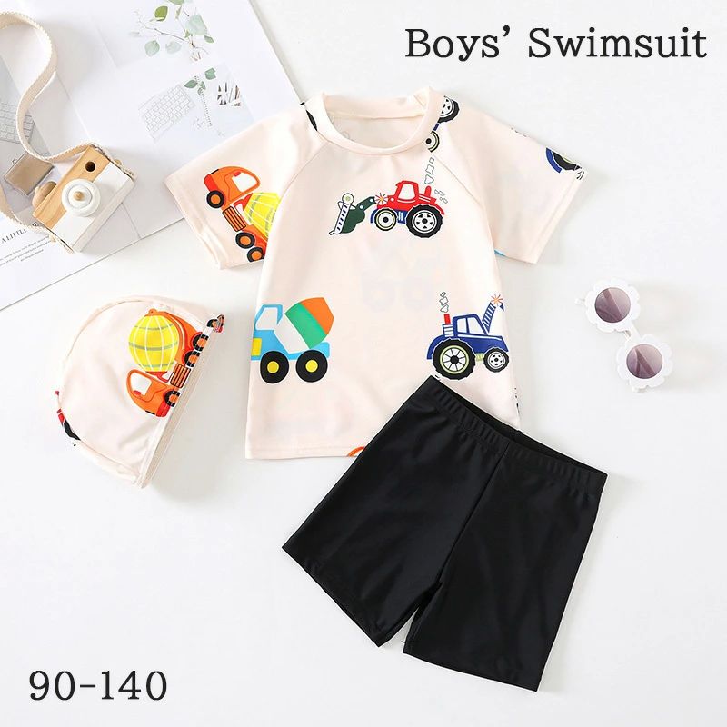 3点セット ベビー 水着 男の子 みずぎ 車柄 ベージュ 90 100 110