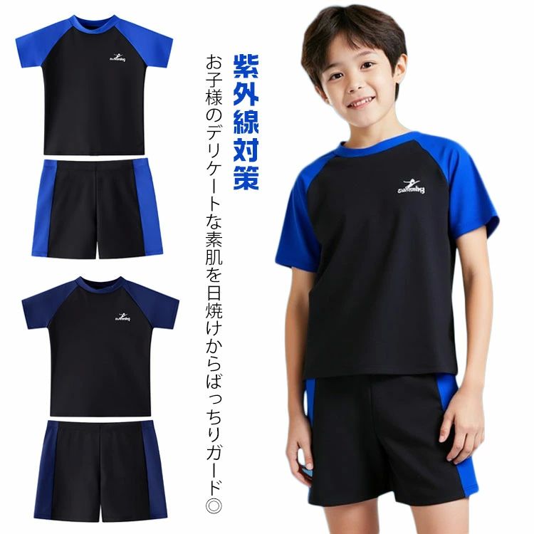 ハーフパンツ 上下セット 水着 セットアップ ジュニア用 半袖Tシャツ インナーパンツ付き ジム 大・・・
