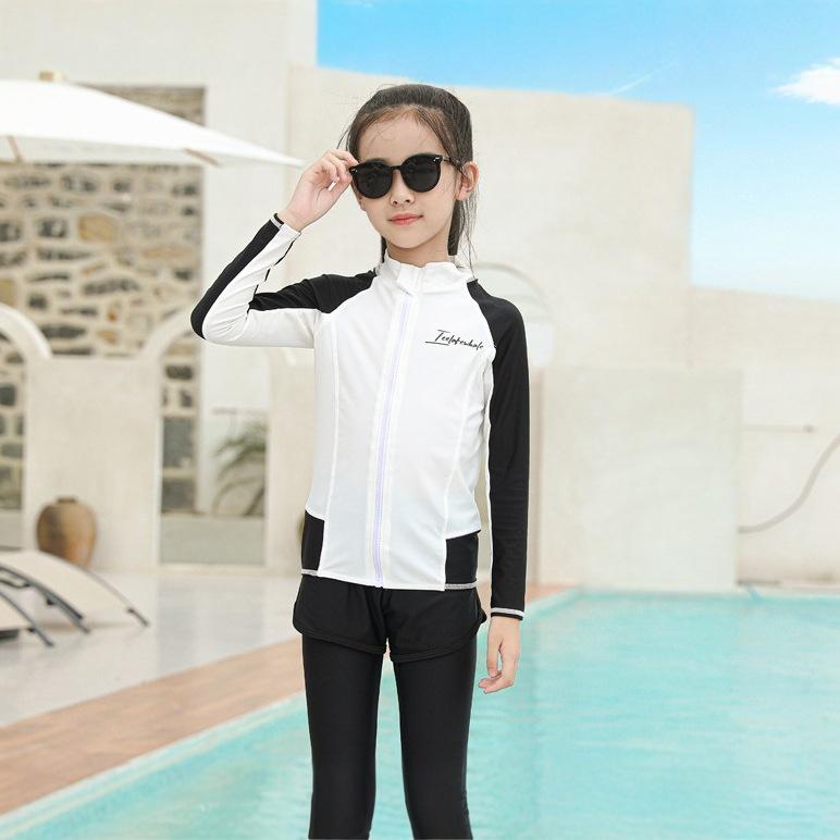 [LUCKYLUAN] キッズ 水着 上下3点セット 長袖ラッシュガード +レギンス+ショートパンツ・・・