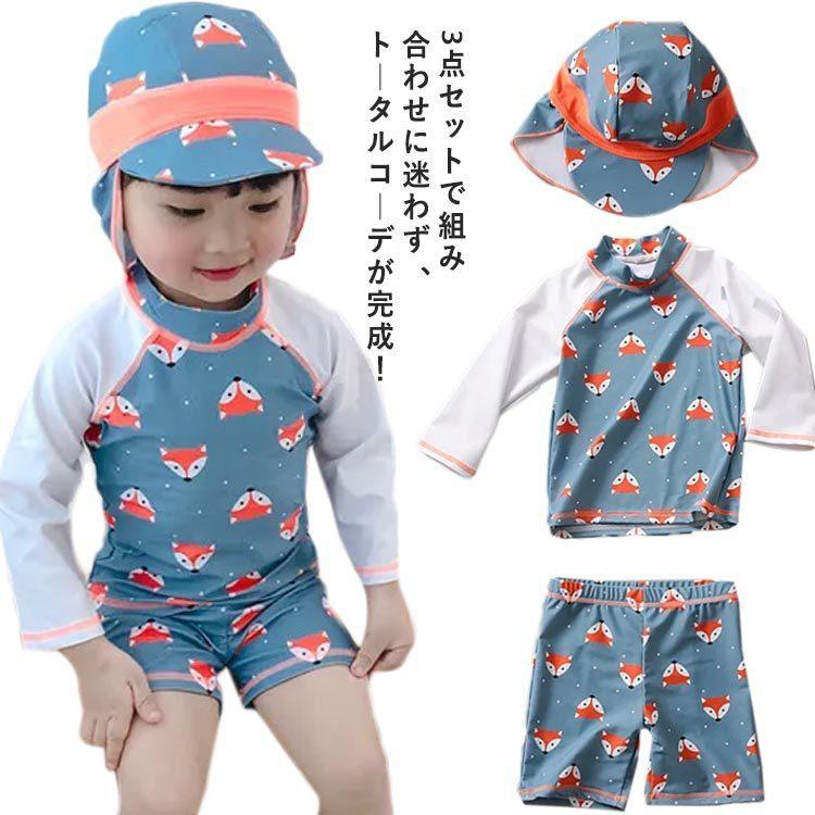 3点セット キッズ ベビー 水着 長袖 ラッシュガード 夏 男の子
