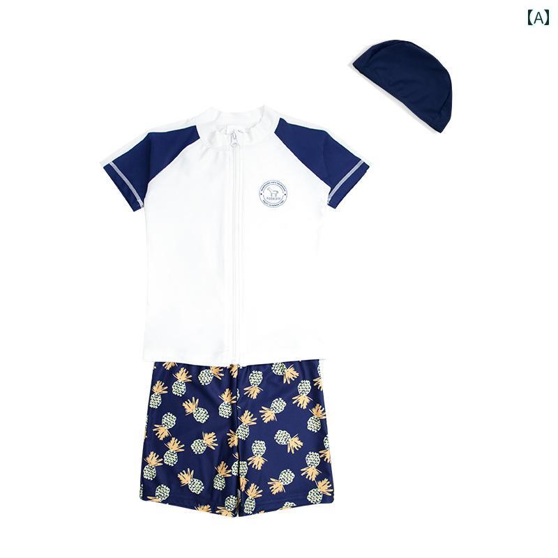 帽子付き ベビー 水着 ジュニア 上下セット 男の子 セットアップ ラッシュガード 子供用 ファスナ・・・