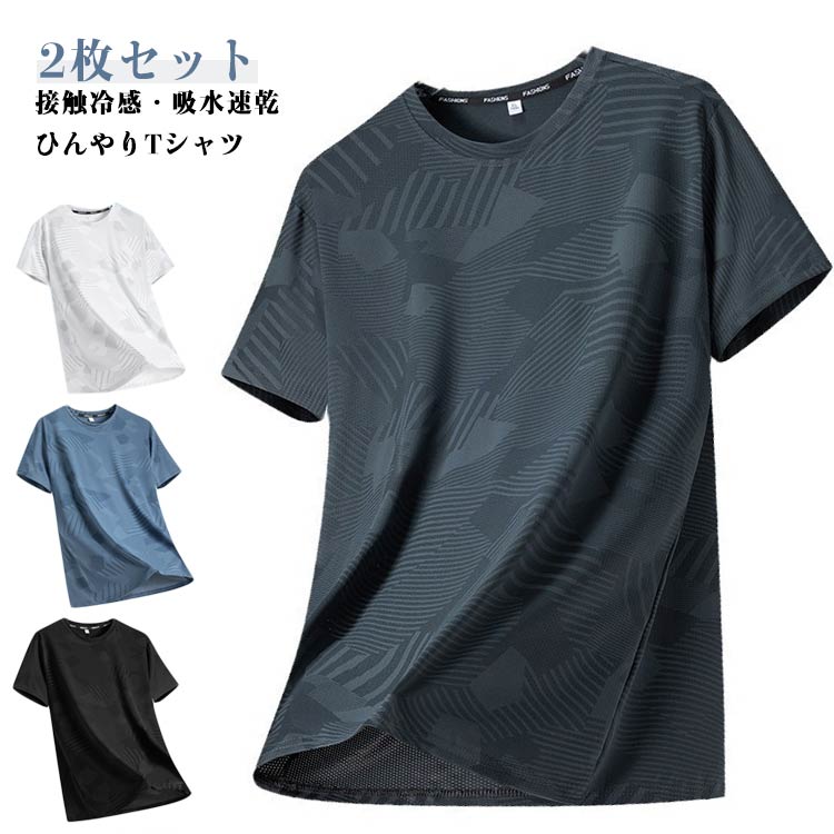 接触冷感 接触冷感 2枚セット クルーネック 半袖 トップス 速乾 メンズ スポーツシャツ 吸汗 通・・・