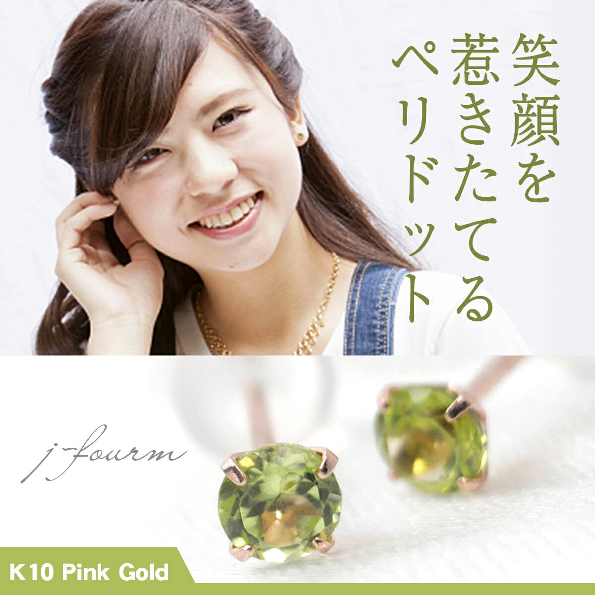 ペリドット ピアス K10 ピンクゴールド 4mm 片耳用 8月 誕生石 定番 スタッド 10K fourm クリスマス ギフト 母の日 レディース メンズ 男性 女性 ラッ