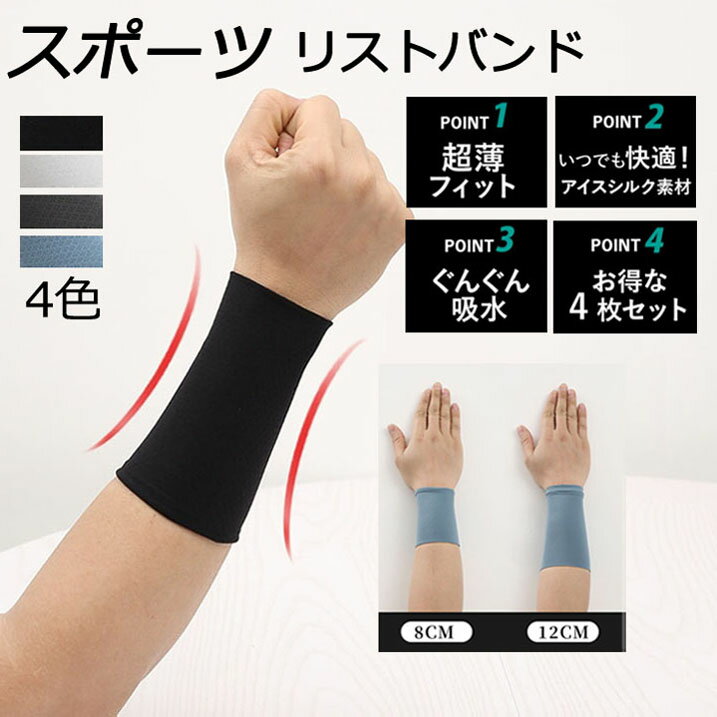 4枚セット リストバンド 薄手 接触冷感 汗拭き 汗吸収 夏用 速乾 通気性 ロング ショート 野球・・・