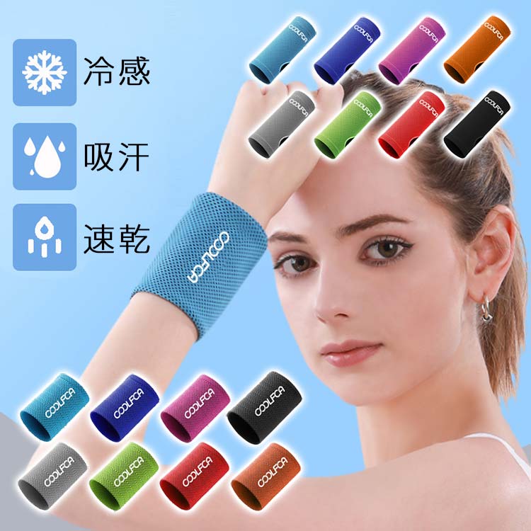 2個セット 接触冷感 汗取り スポーツリストバンド リストバンド 手首サポーター 吸水速乾 送料無料・・・