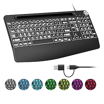 【中古】Sksyloo 有線大型プリントキーボード 7色バックライト付き 充電式 携帯電話ホルダー&・・・