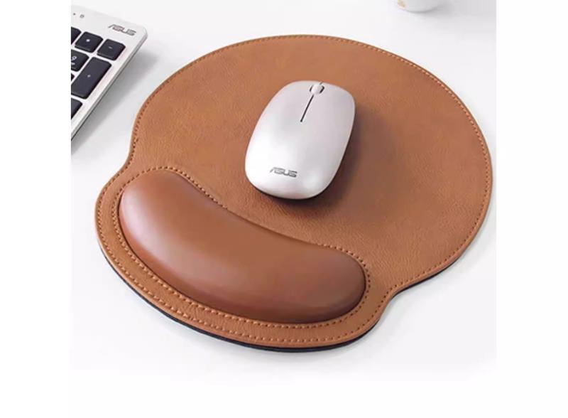マウスパッド 手首 クッション レザー オフィス キーボード リストレスト 滑り止め 黒 茶色 円形・・・