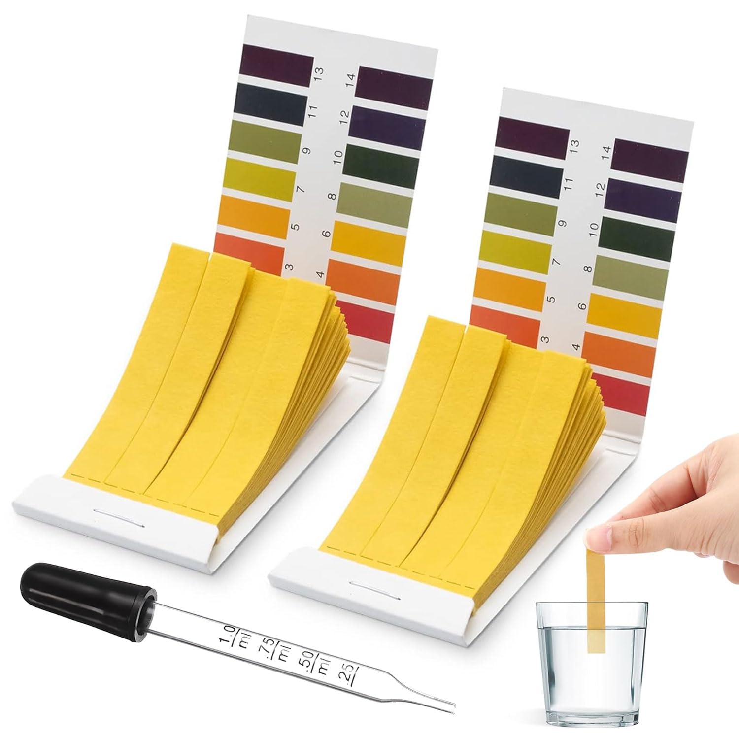 PH試験紙 リトマス試験紙 計160枚入 再利用可能なガラス製スポイト付き アルカリ 酸性 PH1-・・・