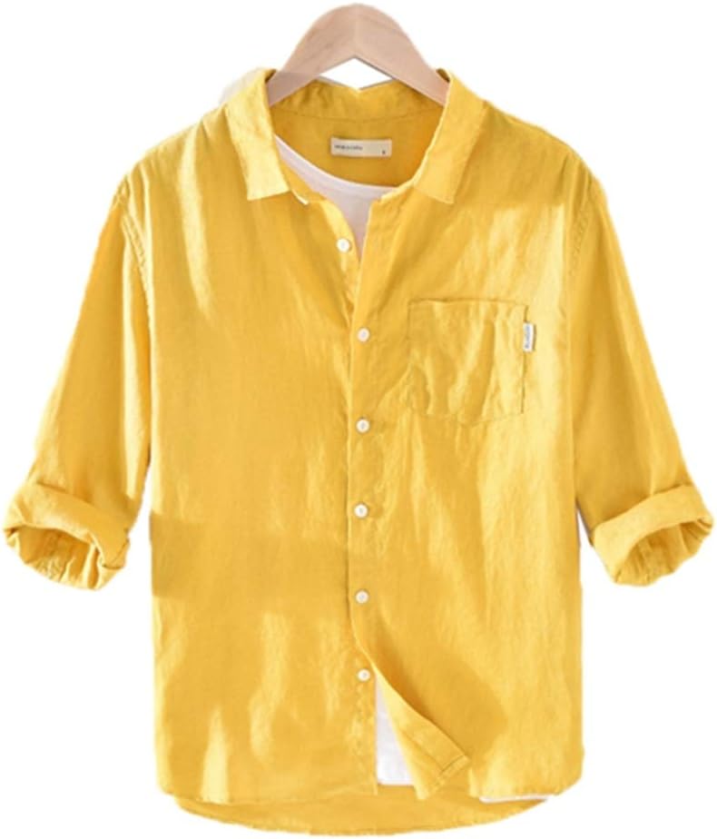 綿麻 春夏服 プルオーバー 七分袖シャツ カジュアル 男性用 立ち