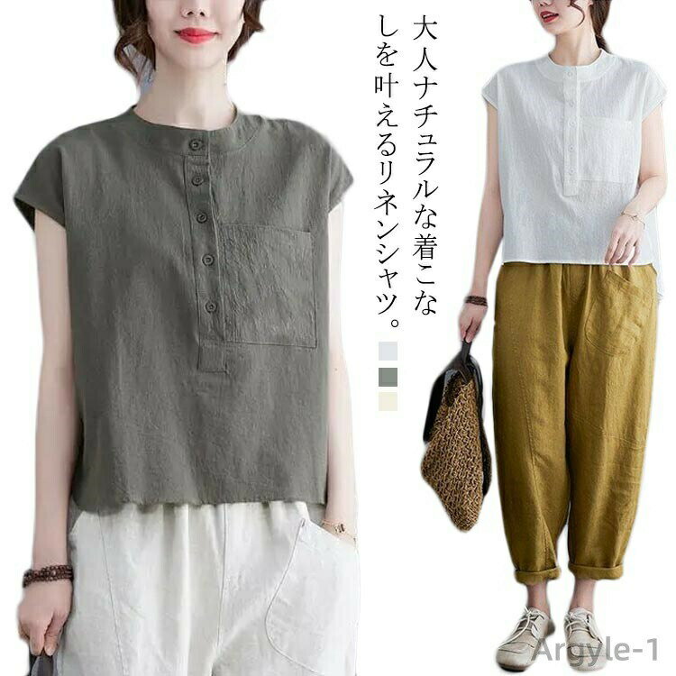 リネン シャツ スタンドカラー 楽天大特集フェア