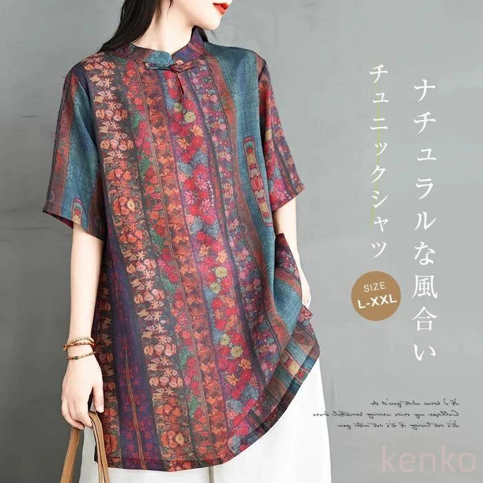 【送料無料】チュニック シャツ ブラウス レディース プルオーバー 立ち襟 チャイナドレス チュニッ・・・