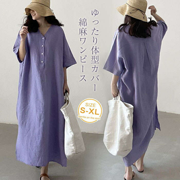 ワンピース 夏 きれいめ 綿 麻 シンプル レディース ゆったり 体