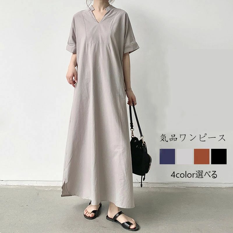 ワンピース 夏 きれいめ 綿 麻 シンプル レディース ゆったり 体
