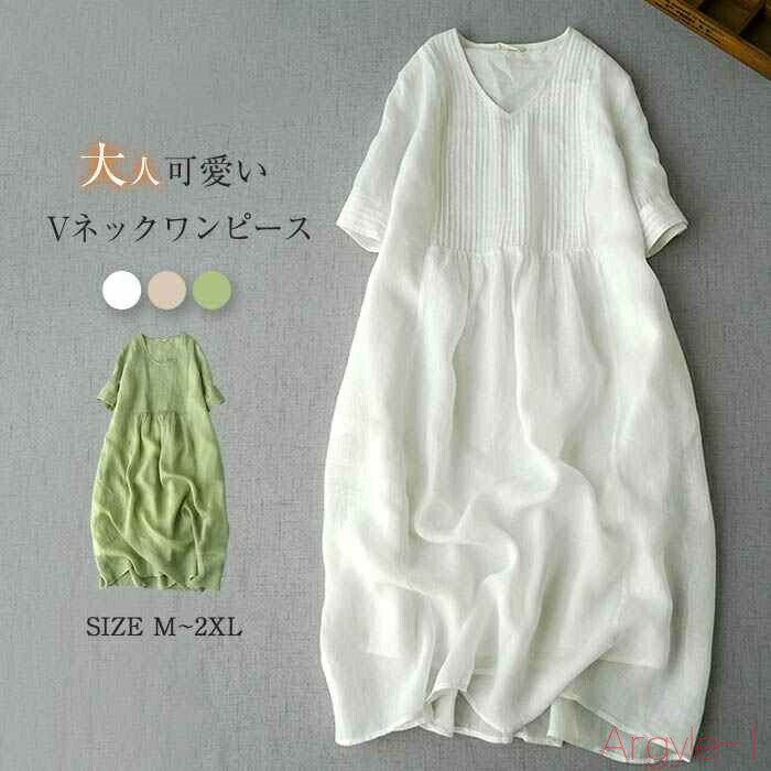 購入15%-30%OFF リネンワンピース レディース 綿麻 半袖 ワンピース ロングワンピース カ・・・