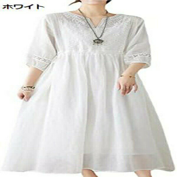 ワンピース レディース 春 半袖 ロングワンピース きれい 夏 春 チュニック ゆったり 綿麻混 リ・・・
