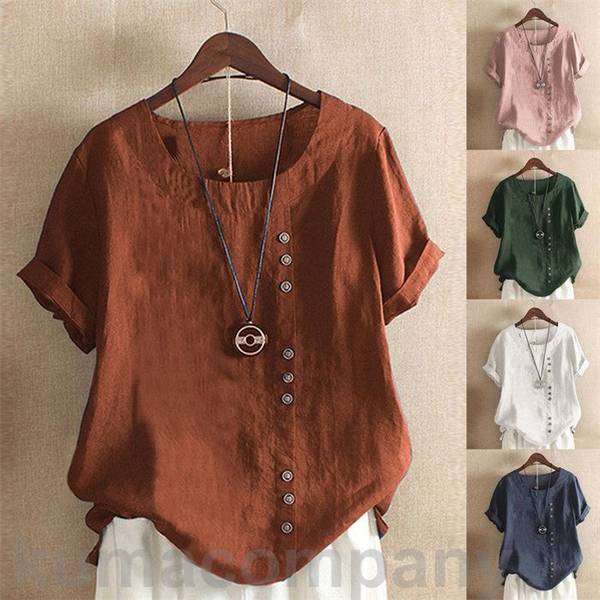 レディース シャツ トップス の コットンと リネンの 半袖 シャツ 女性用 2025 夏の ファ・・・