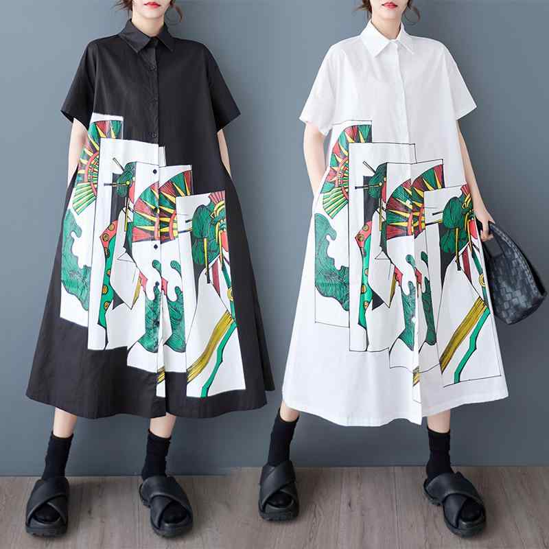 ワンピース 大きいサイズ レディース 女性用 ゆったり シャツ襟 半袖 ポケット付き ロング丈 マキ・・・