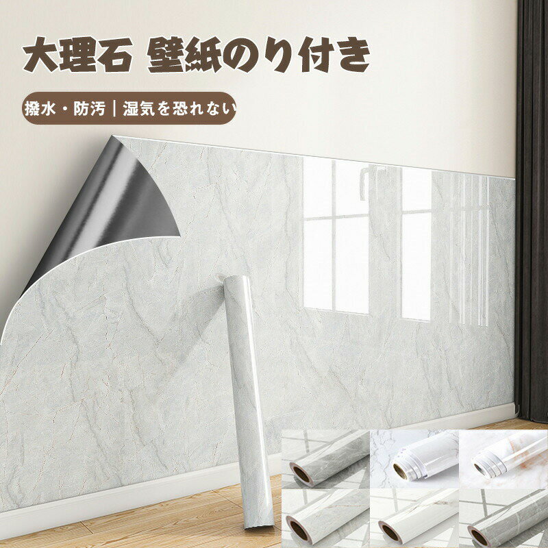 接着剤付き ! つるつるした表面と光沢感 壁紙シール 大理石 貼る DIY 防水 防湿 防火 耐熱 油汚れ防止 台所 シート ウォールステッカー キッチン 浴室 おしゃれ 引越し
