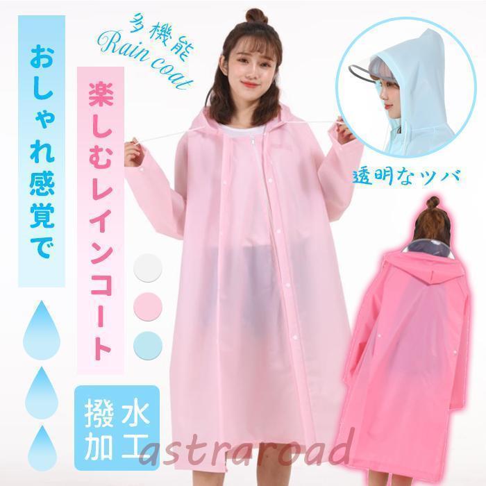 レインコート レディース メンズ 男女兼用 リュック対応 長め レインポンチョ通学用 自転車通学 撥水