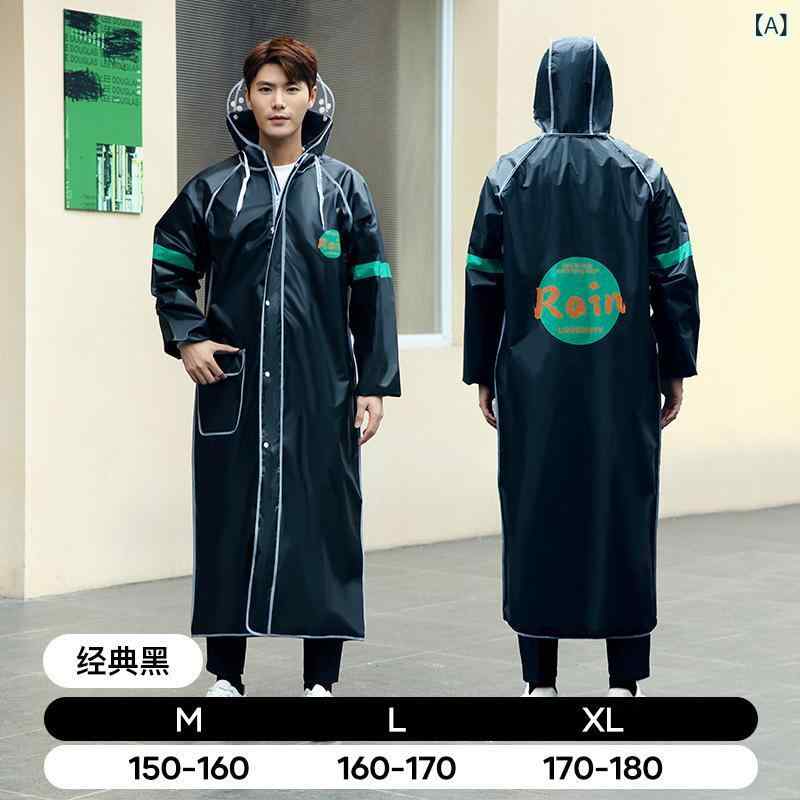 レインコートレディースメンズ男女兼用ロング丈通学リュック対応レインポンチョ二重ツバ付きかわいい自転車・・・