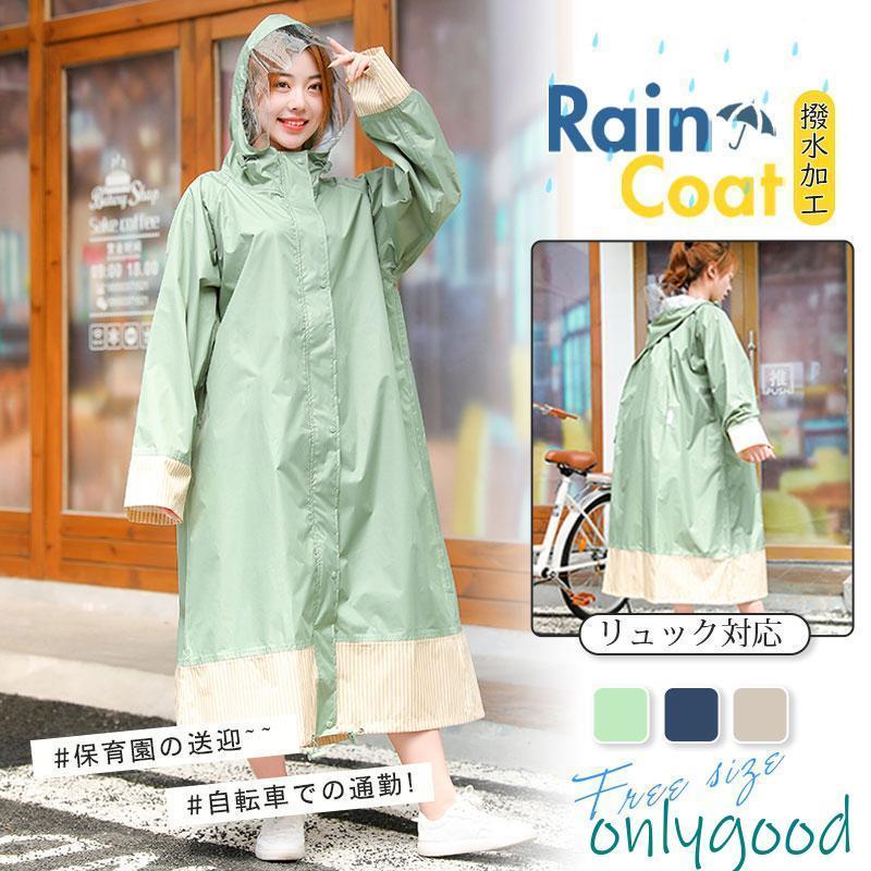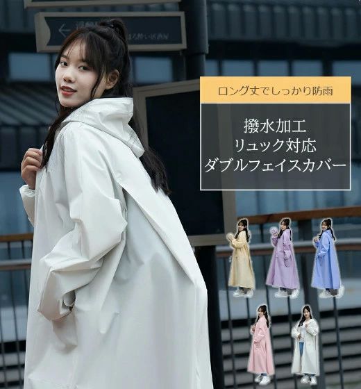 リュックを背負ったまま着れる ロング丈 かわいい 自転車対応 カ